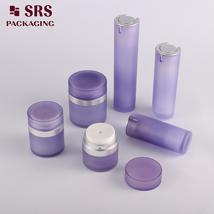 এসআরএস পাইকারি প্লাস্টিকের ত্বকের যত্নের জন্য বায়ুহীন এক্রাইলিক জার এবং লোশন বোতল কসমেটিক প্যাকেজিং সেট